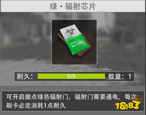 绿-辐射芯片可以在木屋、熊洞、丧尸、超市、加油站、各大物资点楼梯房楼顶等地点找到。
