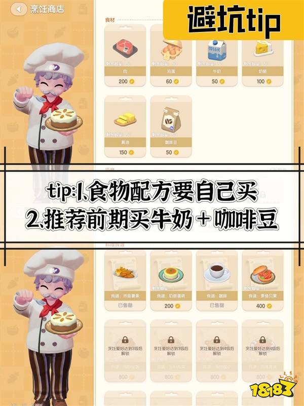 4. 每天购买咖啡和牛奶是必要的,制作拿铁咖啡可以净赚利润,同时还能增加爱好等级。(小技巧:在烹饪时可以多开几个任务,只要你能忙得过来)。