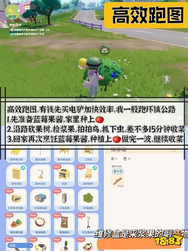 1. 首先,可以优先收集镇上的果树和树丛资源,同时在家中合理安排种植作物的时间。果树的收集仅消耗体力和工具耐久,而树丛则无需考虑太多其他因素。