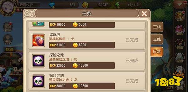 主线任务、支线任务、每日任务:完成这些任务不仅能获得经验,还能获得金币和道具奖励。每日任务每天都会刷新,因此玩家需要按时完成。