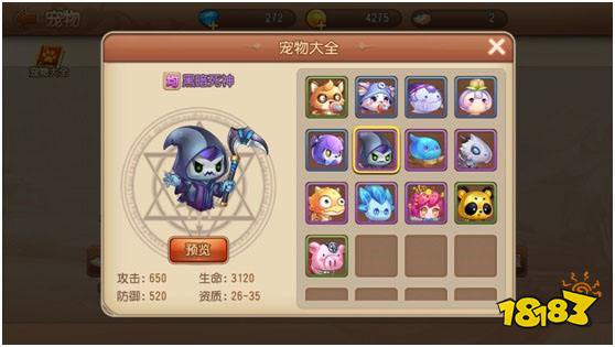 游戏内的平均型宠物有狐狸宝宝和黑暗死神。