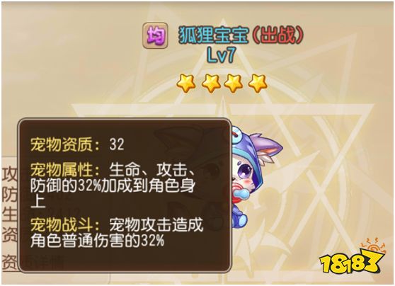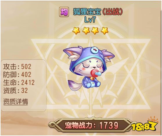 以一个具体的例子来说明:假设图片中的狐狸宝宝的攻击力为510,防御为408,生命为2448,资质为32。