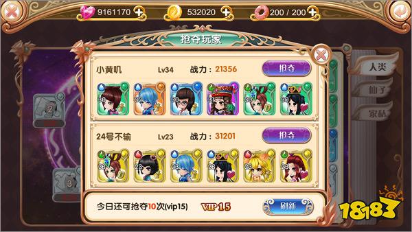 在抢夺玩家一栏下,显示你可以抢夺的玩家队伍,以及与你VIP等级相关的次数。刷新可以获得新的可抢夺玩家,如果遇到战力过高的对手,不妨刷新看看。