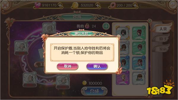 在你抢夺他人碎片的同时,别人也可以抢夺你已拥有的碎片。点击合成界面中间的开启保护,可以消耗保护锁对你的碎片进行保护。