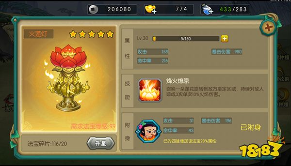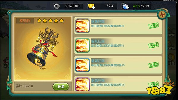 功能法宝主要提供非战斗相关的辅助功能。例如,神农锄能够增加农场宠物的体力并提高种植上限,这对于农场经营来说是一个巨大的助力。无字天书则能够为玩家提供额外的经验值,加速玩家的成长。驱妖铃可以增加每日免费扫荡的次数,让玩家能够更频繁地进行扫荡。而月光宝盒则可以减少法宝的冷却时间,使得玩家能够更频繁地使用法宝。