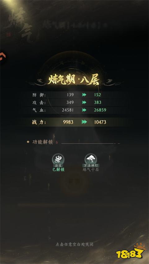 当你的角色修为达到炼气八层时,你可以装配法宝,这将显著提升你的角色战力。
