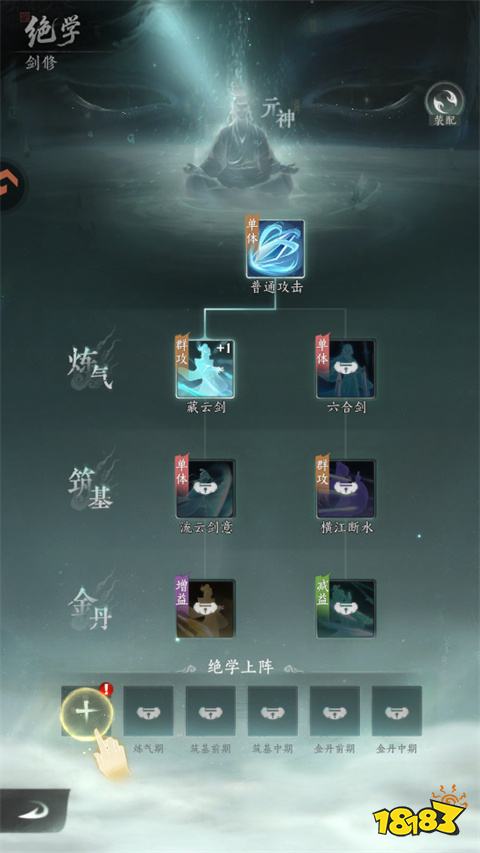 在绝学搭配方面,玩家可以参考核心搭配:藏云剑、六合剑和流云剑意(在BOSS战中增加伤害)。升级的优先级是将藏云剑提升至5级,流云剑意提升至20级。后续绝学道具可以从宗门中获得,这需要玩家达到筑基中期二重后解锁。