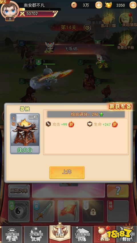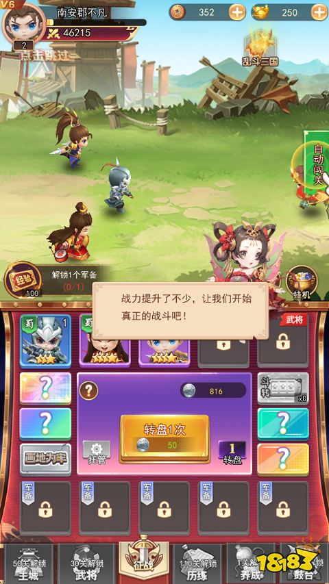游戏采用了策略放置与多元竞技的玩法。在主线推图中,玩家可以体验自动战斗的放置挂机机制,即使在离线状态下也能稳定获得经验、金币和军备材料,轻松实现等级和战力的提升。竞技玩法包括3V3对战、跨服试炼、赤壁国战等多种模式。赤壁国战特别分为魏蜀两大阵营,玩家可以报名参战、竞选大将军,通过攻城略地和集火作战来争夺胜利。此外,还有百服竞技、神王争霸等玩法,既满足了个人竞技的乐趣,也兼顾了团队竞技的体验。