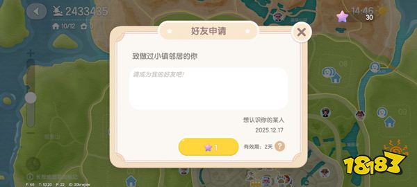 最后一步是发送好友申请。在点击添加按钮之后,系统会自动生成一个好友申请并发送给被选中的玩家。您只需等待对方接受即可。