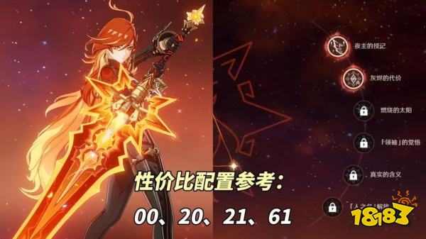 关于加配顺序,0命玛薇卡是基础,接下来可以直奔2命或者抽茜特菈莉,然后留1金等希诺宁,接着是玛薇卡武器‘焚曜千阳’,最后直奔6命或抽‘茜特菈莉2命+希诺宁2命’。1、6命的跑图质变显著提升了移动时间,而2命则在后台副C玩法中可以降低敌方20%防御,在前台主C玩法中总伤提升30%+。