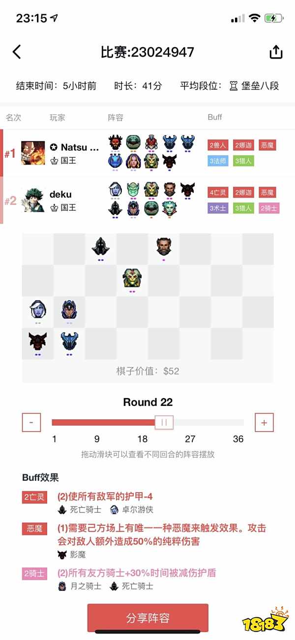 17回合做出标准上7动作,此时前一回合抽到2星露娜此时也上场了,由于有亡灵的减甲加上2星影魔,此时止血效果明显。而且这时候待命区已经有1只美杜莎了。
