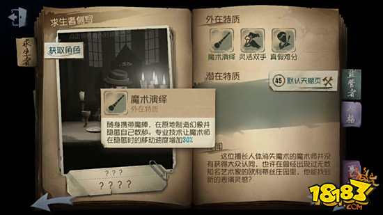 第五人格是一款非对称对抗游戏,游戏中求生者阵营要时刻躲避监管者的追杀,并且找到线索,逃出生天,今天小编跟大家介绍下求生者阵营的魔术师瑟维勒罗伊,下面一起来看看吧。