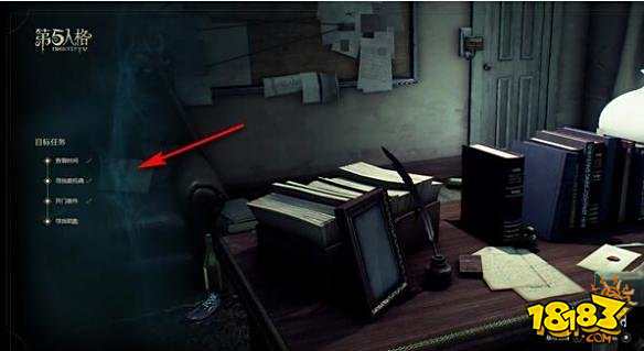 沙发上并没有钥匙,点击书桌左侧的书籍,选择“F无人生还”