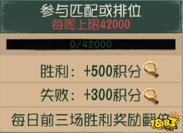 这是获取推理积分的重要途径,每场普通匹配和天梯匹配都会获得积分,根据胜负情况和存活人数,从300-500分不等;每周从匹配获得的推理积分会有积分上限