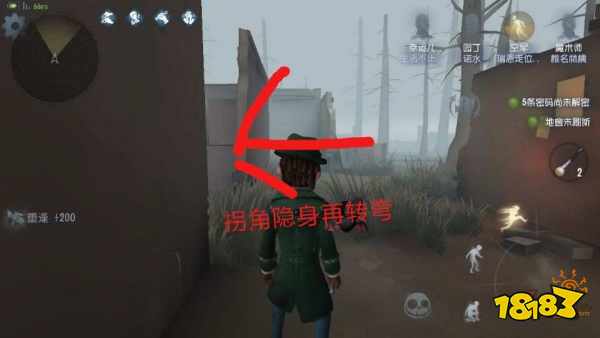 解析:奔跑状态下路过拐角使用魔术棒隐身拐弯,利用分身以及拐弯后的墙体遮挡住影子,然后利用地形复杂的废墟区域隐藏自己。