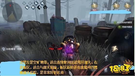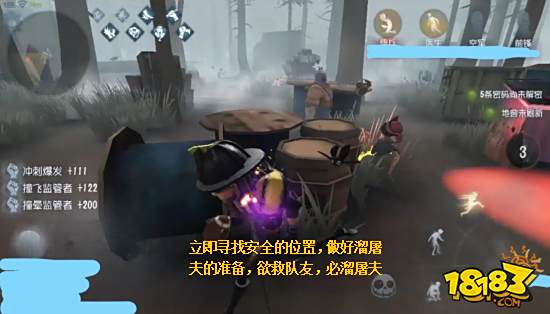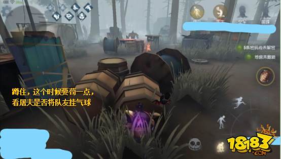 ①队友被砍倒时,找好位置观察屠夫动向,当屠夫把队友挂上气球时,抓住时机使用技能冲撞屠夫,将其撞晕解救队友,然后迅速拉开距离。