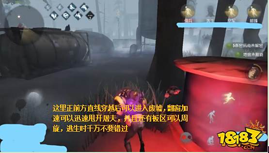 除了在主动溜屠夫时需要考虑地形之外,逃命时也要有清晰的思路,或许会有人说记不住地图,但是在多次游戏过后,你绝对会对这些地点有着特别的记忆,所以千万别慌。