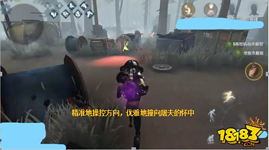 ②当队友被处刑,屠夫守尸时,可以如法炮制冲撞屠夫营救队友,但是需要注意的是,这时冲撞最好让屠夫飞出去撞上物体,延长眩晕时间,否则容易被回过神来的屠夫砍倒。当然,状况好时也可以扛一刀,救走队友,同时趁屠夫擦刀的时间利用技能脱身。