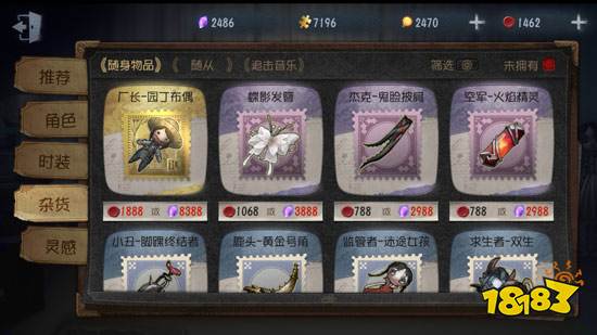 随身物品有属性之分,比较普通的有蓝色,只能作为装饰品,比较高级的有紫色,金色品质,会有些独特的特效,比如厂长园丁布偶,可以让厂长的傀儡穿上园丁的皮肤,空军的火焰精灵产生信号枪特效。不过高级品质基本都是专属的,而且获得难度较高。