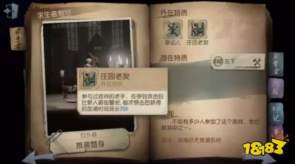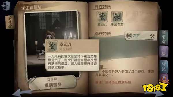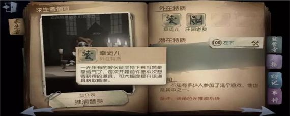 幸运儿是第五人格里目前为止没有DEBUFF的角色,但是天生出生无道具。