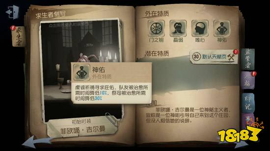解析:跟佣兵和前锋一样属于文盲的角色,电机流这辈子都不可能带上她了,那个校准区域只有正常的50%,而且触发率还极高,如果队伍中有慈善家,屠夫又带了【夜枭】(在警戒半径内,降低求生者30%的破译、治疗和破坏校准的成功范围),那校准区域跟触发几率谁用谁知道。