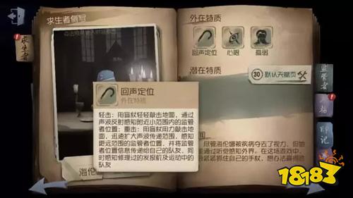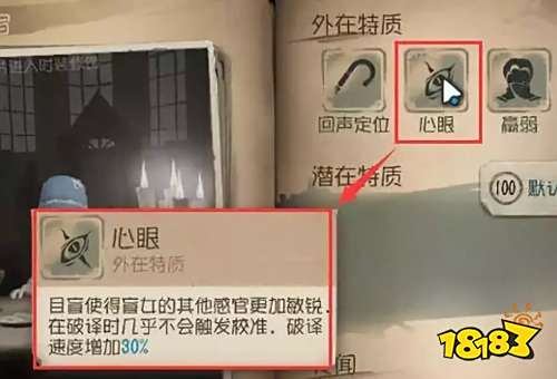 神技不多说,这就是盲女开机的安全保障,开机之前用盲杖敲击地面就能看到监管者的位置,而且队友也可以看到。敲击的力度越大范围就越大,基本一个重击下去就可以看到全图视野,简直bug!
