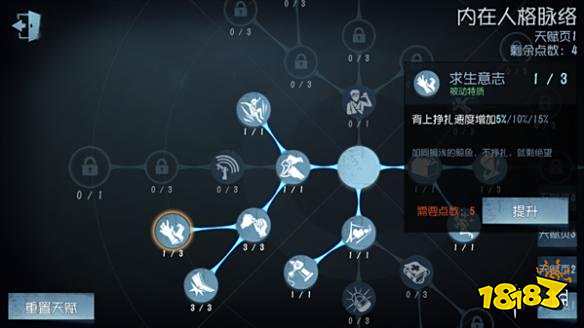 【求生意志】 : 增加背上挣扎速度最高15% 增加生还机会 这样基本你受伤状态离开钩子倒地 很大几率挣脱下来!