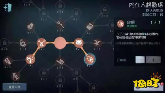 刚开始的时候,窥伺天赋也有找人的作用,这样比较好找密码机,但其实耳鸣是可以当窥伺使用的,而且效果很好。当然,需要你有一定的经验并且对距离比较敏感,比如说,出现耳鸣图案时,你和某个密码机正好差不多是36米,说明这里有人解码。