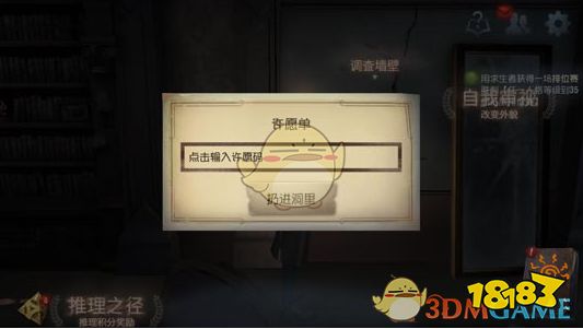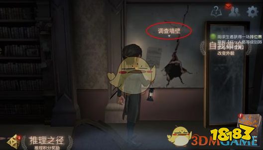 2、在游戏大厅内找到调查墙壁,点击[调查墙壁];