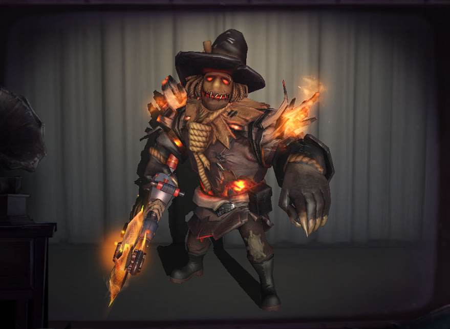 皮肤描述:一场游戏后在大门附近发现的稻草人装束,虽然上面燃着烈火,但看起来应该还能用