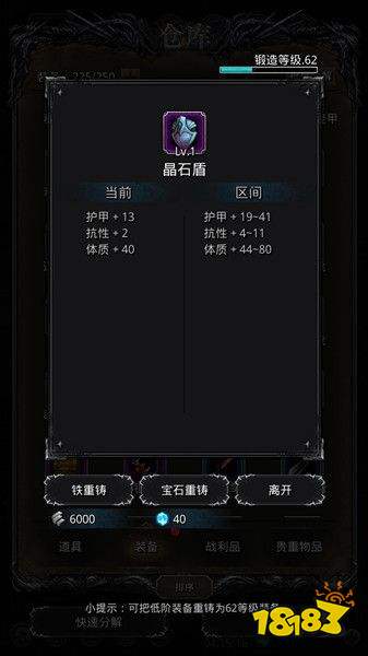 挂坠吸血20%,匕首无视50点护甲,板甲和椰头一般,盾还可以,不加力量。