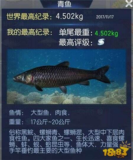 钓鱼王者把现实中的钓鱼玩法融入到虚拟场景中,并且采用与现实相匹配的装备和玩法,在科普鱼类知识的同时,最大程度上还原现实玩法。在游戏中有着各种各样的鱼类,今天小编就给大家带来青鱼的图鉴,一起来看看吧。