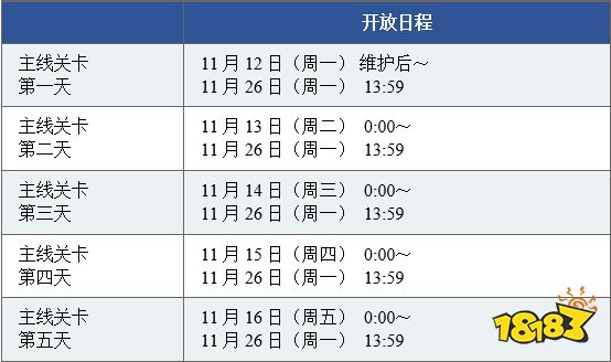 活动时间:2018年11月12日 维护后 ~ 11月26日 13:59