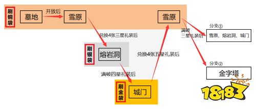 铜袋子在雪原刷,银袋子在熔岩洞刷,金袋子在城门刷,三种袋子在金字塔刷,下面附上各个地区自由本的配置: