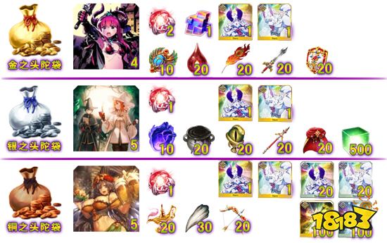 本次活动道具分为三种、金银铜头陀袋分别对应为三种稀有度道具。