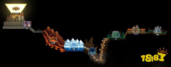起点为最右侧,按从右至左顺序共有『墓地』『城堡外围城市』『森林』『洞窟』『雪原』『熔岩洞』『城门』『金字塔』共8处地点,主线剧情本会在活动前5天内分批开放。