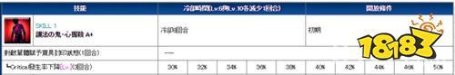 1技能拥有较为稀有的宝具封印效果与暴击威力下降。宝具封印效果在合适的时机使用是可以救命的,再不济也能当作高阶的灭气技能使用。而暴击威力下降幅度非常高,高等级的该技能甚至有希望封锁开启一些暴击概率提升技能的敌方暴击,算是比较优秀多面的生存技能。