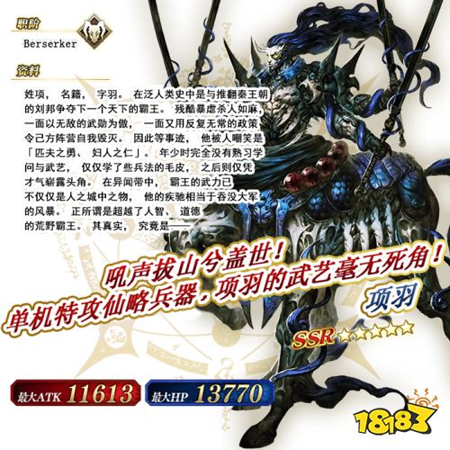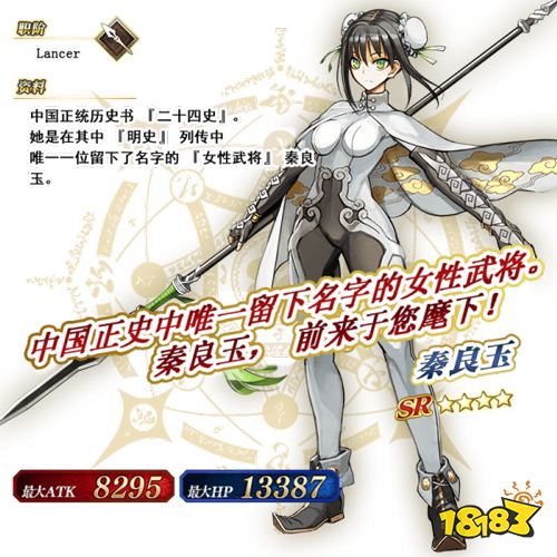 在第2部 第3章「Lostbelt No.3 人智统合真国 SIN 绯红之月下美人」中的「★5(SSR) 项羽」 「★4(SR) 兰陵王」 「★4(SR) 秦良玉」全新登场!