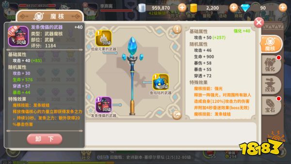 如我的第二个魔核,可以看到附带技能强光,对周围所有敌人造成自身百分之120的攻击力伤害并附加4秒的昏迷效果,虽然对boss无效,但是平时很多时候用来控一下小怪还是很给力的,并且技能的伤害也不低。