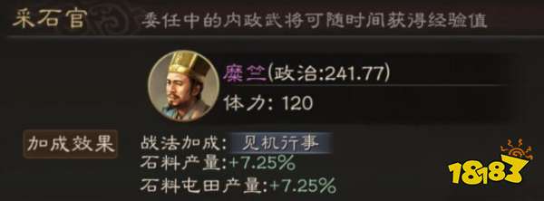如果糜竺作为主政官可以带来很多不同的资源和铜币,前期让他来当主政官简直再好不过了,玩家们多多注意这个角色哦。糜竺也可以去当采石官,前期玩家们建城需要很多的石料,糜竺正好可以帮我们来完成获得石料这个困难的任务。最后推荐糜竺当的是税务官,因为游戏中的铜币获取方法并不是很多,所以让糜竺来当税务官能够稳定的获得超多铜币非常好用哦。