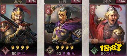 前期组合:韩当+皇甫嵩+刘封(统御15)