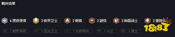 4黑夜使者,3铁甲卫士,2刺客,2游侠,3神盾战士,2重骑兵;