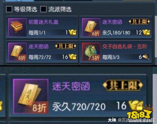 新增打折迷天:6折迷天180张,8折迷天720张(买完6折才能看到),购买完需要1368R