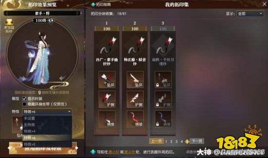 随身改:走菜单在拓印设置里将特效改成+6特效,再选对应的扶风·粉/扶风·绿,粉色和绿色丝带就出来啦!同理,改成+8两个外观都会变成金色~