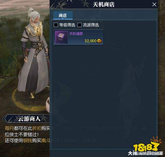 桃花坞-云游商人处用铜钱购买【天机福匣】3.2w一个。