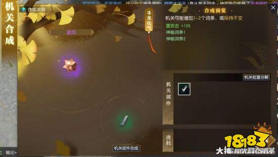 机关部件可与同阶机关进行合成,若合成成功,机关随机增加词条,之前的词条类型和词条数值不会发生变化;若合成失败,则机关词条保持不变,且该机关下次合成成功率提高。