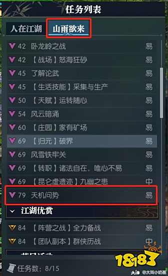 角色等级≥79级的玩家可在【任务-风雨欲来】中接取【天机问势】引导任务。