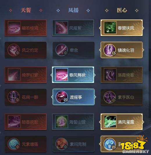 1.彩翼+扶风:常用,回血并抵挡一次爆发伤害。扶风会被打断