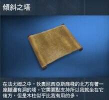 找到后,跑到塔后面有个树丛,里面有莎草纸,捡了就行。