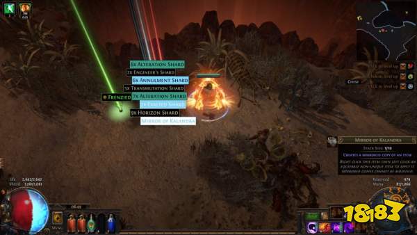 还有一种选择是黄衣服用精华点出被击中后获得6秒猛攻,然后猎人攻击爆率,前缀上一个额外es,可以不上多里亚尼。但是黄衣服我护甲拉不起来,因为个人习惯减诅咒效果的戒指,然后懒得做鞋子,所以少了两个红球,黄衣服我扛不住自残。